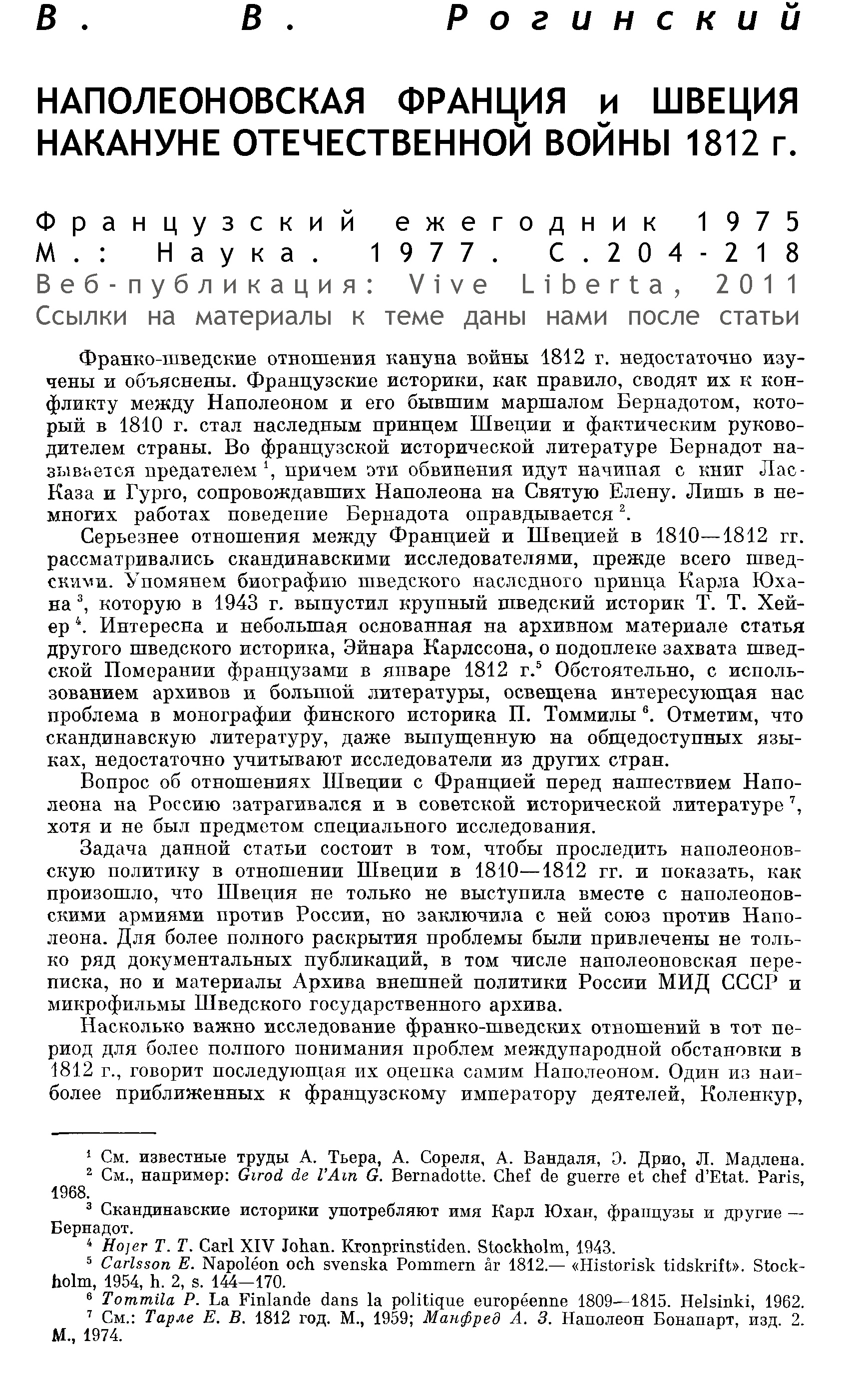 Наполеоновская Франция и Швеция накануне Отечественной войны 1812 г.