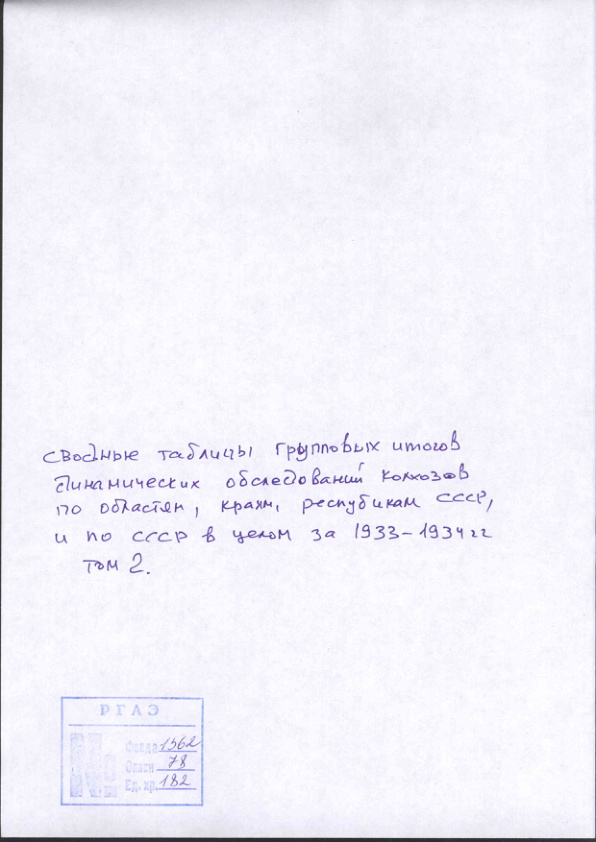 Сводные таблицы групповых итогов динамических обследований колхозов по республикам и в целом по СССР за 1933-34 гг. Том. 2