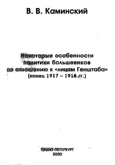Некоторые особенности политики большевиков по отношению к «лицам Генштаба» (конец 1917 – 1918гг.)