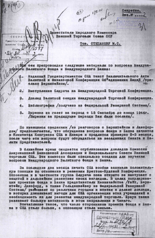 Докладная записка с материалами по Международному Валютному Фонду и Международному банку. 26 декабря 1944 г.
