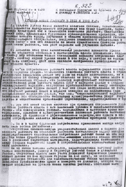 Уровень жизни рабочего в 1913 и 1931 гг. Материал к заседанию коллегии ЦУНХУ от 5 апреля 1932 г.