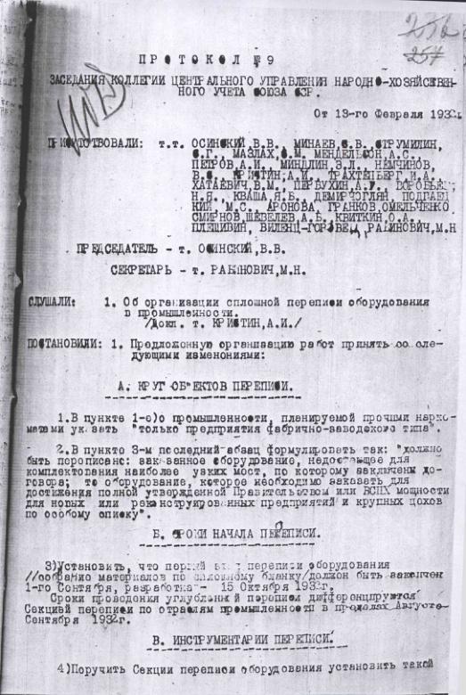Протокол заседания коллегии ЦУНХУ СССР от 13 февраля 1932 г.