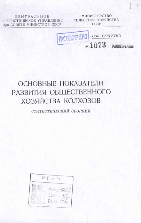 Основные показатели развития общественного хозяйства колхозов (Статистический сборник)