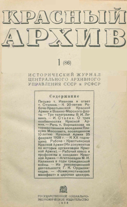 Красный архив. Исторический журнал. 1938 г.