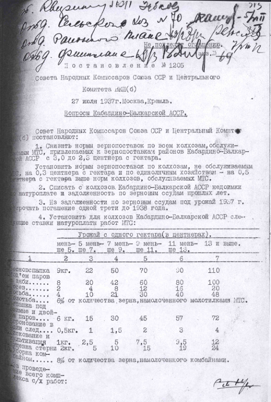Постановление № 1205 СНК СССР и ЦК ВКП(б). Вопросы Кабардино-Балкарской АССР. 27 июля 1937 г.