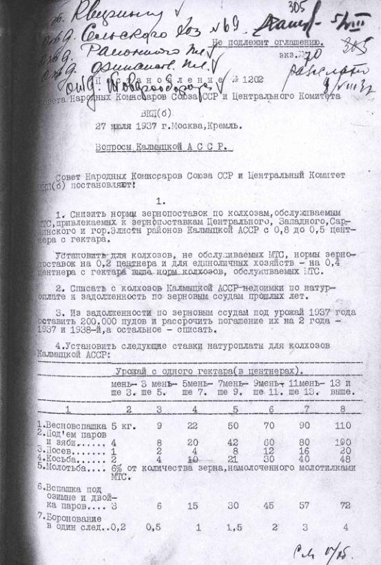 Постановление № 1202 СНК СССР и ЦК ВКП(б). Вопросы Калмыцкой АССР. 27 июля 1937 г.