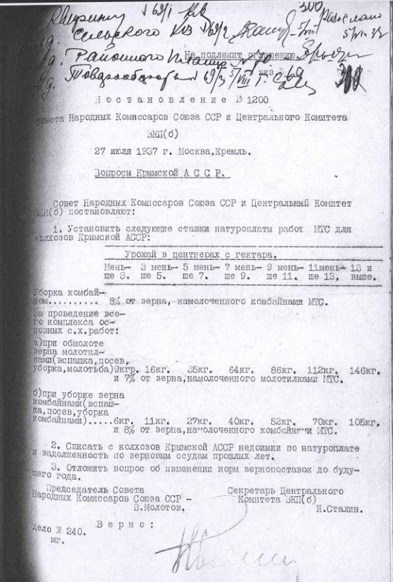 Постановление № 1200 СНК СССР и ЦК ВКП(б). Вопросы Крымской АССР. 27 июля 1937 г.