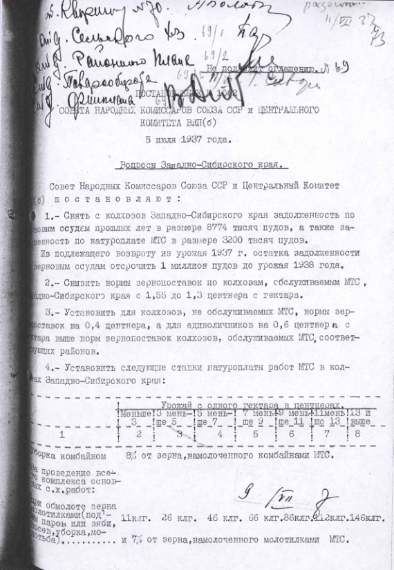 Постановление № 1062 СНК СССР и ЦК ВКП(б). Вопросы Западно-Сибирского края. 5 июля 1937 г.