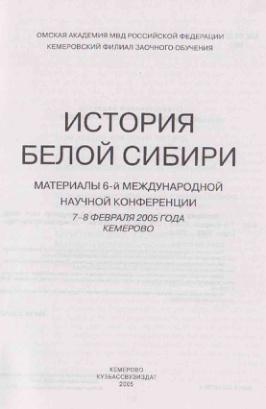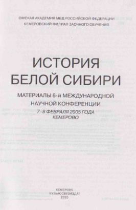 История Белой Сибири. (Материалы VI Международной Научной Конференции. Кемеровское Отделение заочного обучения Омского Юридического Института МВД РФ, 7-8 февраля 2005 г.). Кемерово, Кузбассвузиздат, 2005. СС.95-101.