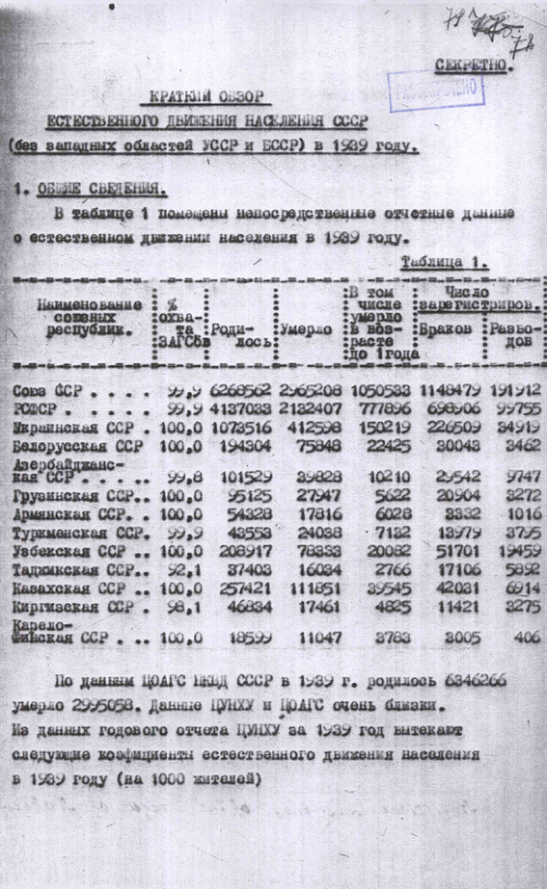 Краткий обзор естественного движения населения СССР за 1939 год.