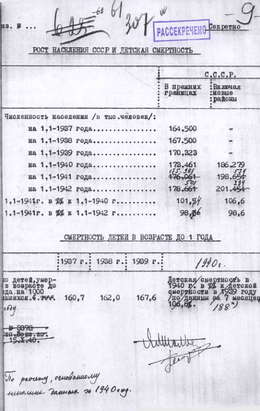 Расчеты численности населения СССР на 1937-1942 гг. 15 октября 1940 г.
