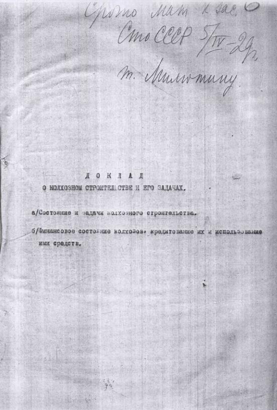 Доклад о колхозном строительстве и его задачах. 5 апреля 1929 г.