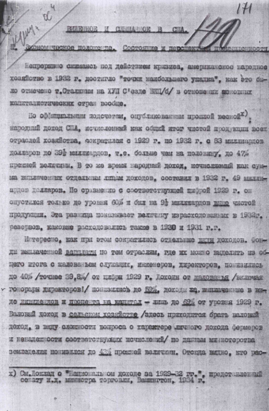 Записка Осинского "Виденное и слышанное в США". 1935 г.