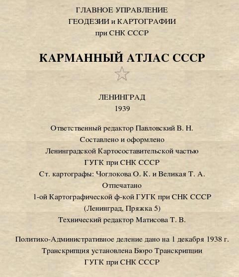 Карманный атлас СССР 1939