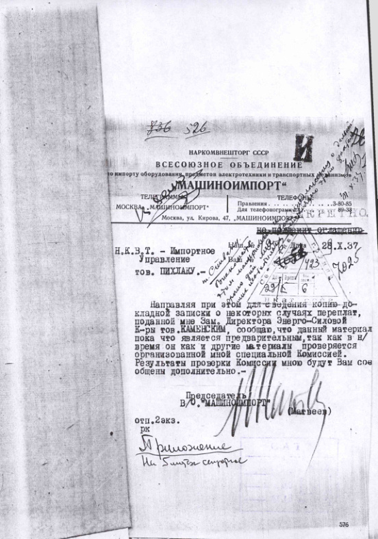 Докладная записка о случаях переплат за импортное оборудование за период 1931-1937 гг. 25 октября 1937 г.