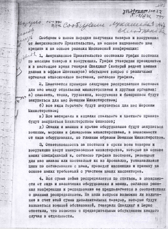 Сообщение о порядке и получении товаров из США. 17 сентября 1941 г.