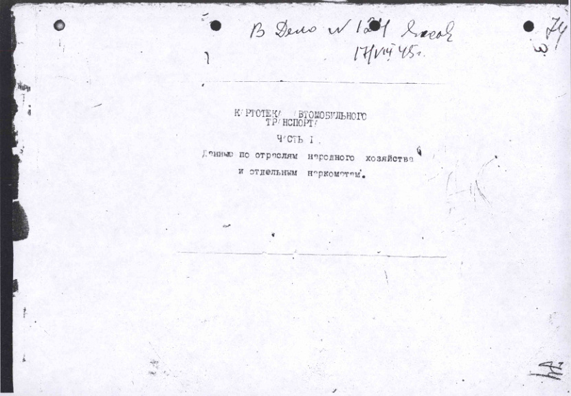 Картотека автомобильного транспорта. Данные по отраслям народного хозяйства и наркоматам. 17 августа 1945 г.