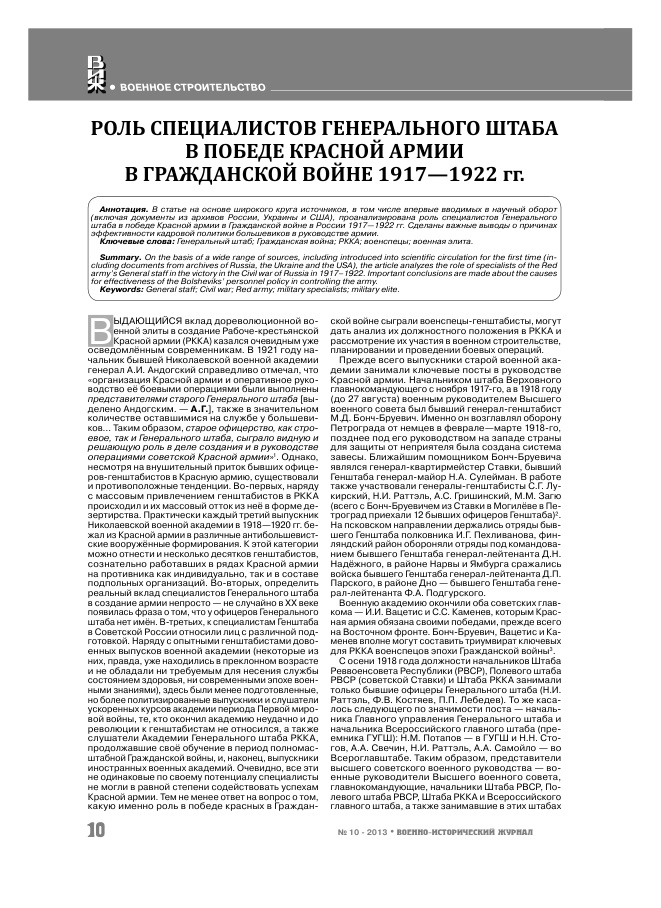 Военно-исторический журнал. 2013. № 10. С. 10-17.