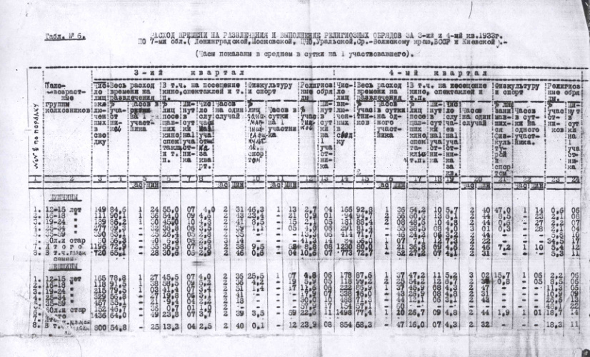 Таблицы расхода времени колхозника за III и IV кварталы 1933 года.