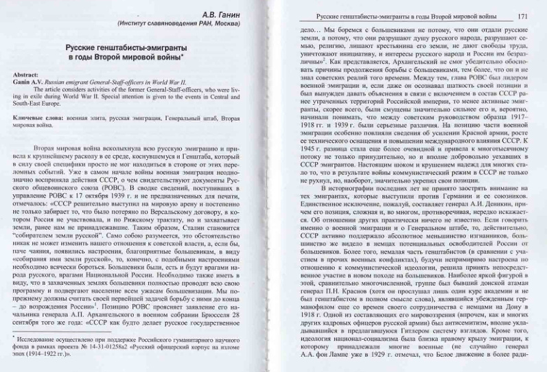 Русские генштабисты-эмигранты в годы Второй мировой войны .