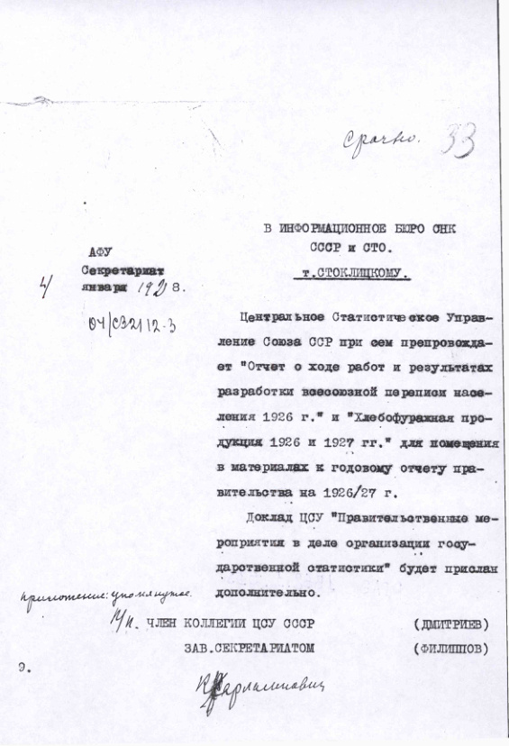 Отчет ЦСУ о хлебофуражной продукции в 1926-1927 гг.