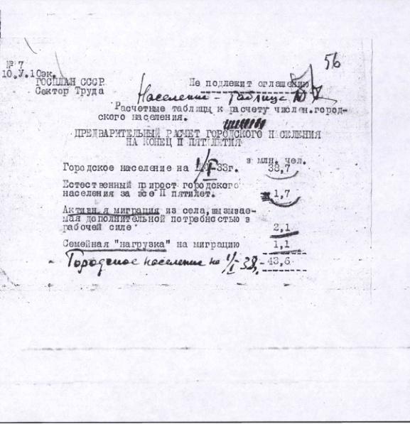 Предварительные расчеты численности населения СССР на вторую пятилетку произведенные сектором труда Госплана СССР. 10 мая 1933 г.