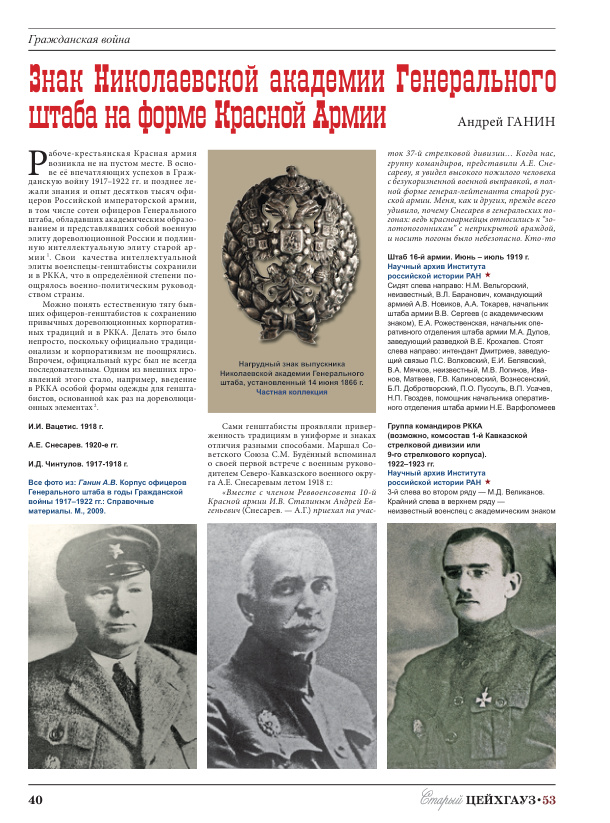 Знак Николаевской академии Генерального штаба на форме Красной армии