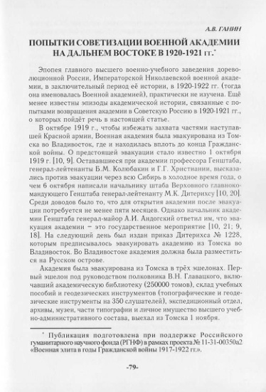 Попытки советизации Военной академии на Дальнем Востоке в 1920-1921 гг.