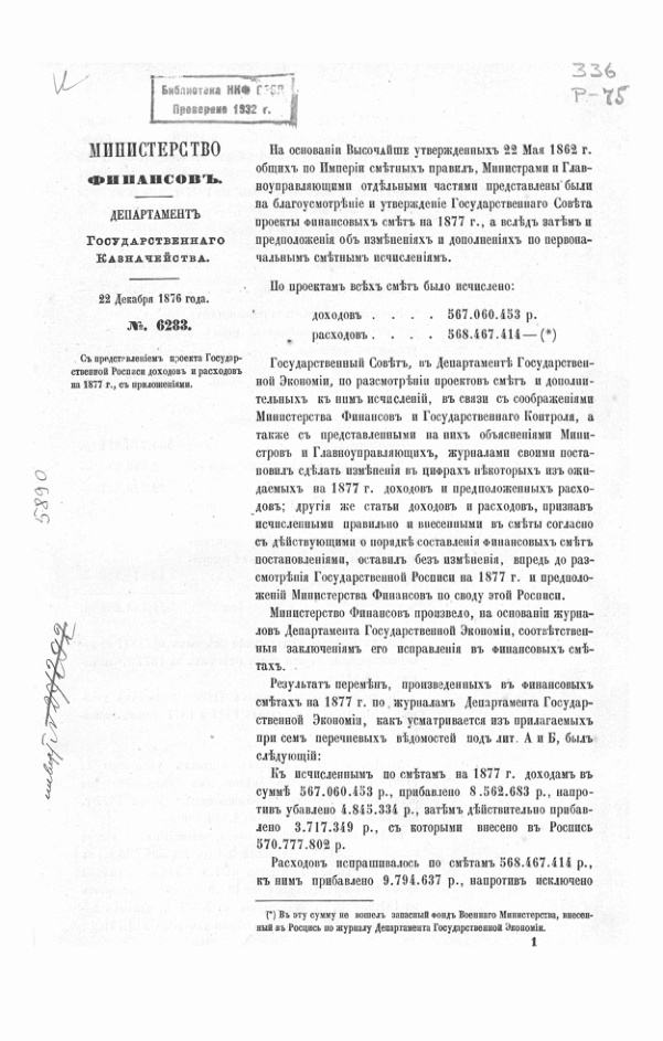 Общая государственная роспись доходов и расходов на 1877 г.