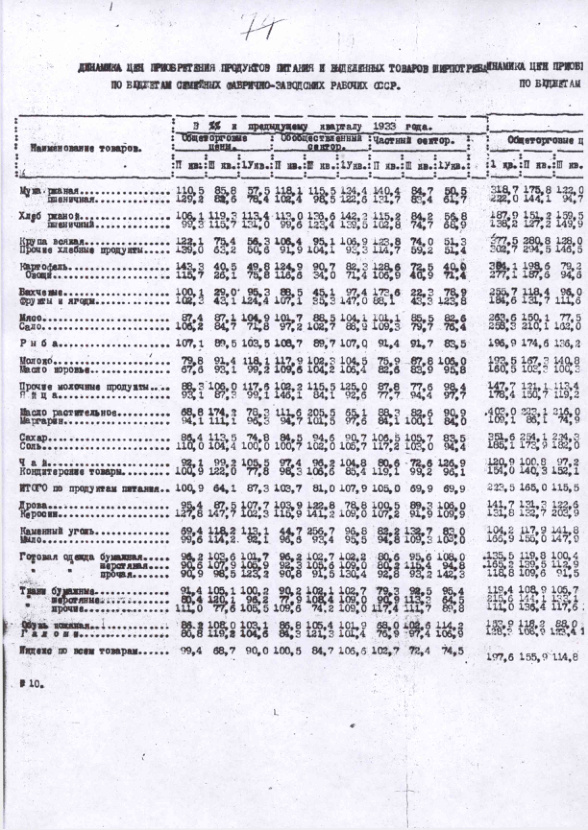 - Динамика цен приобретения продуктов питания и товаров ширпотреба по бюджетам семейных рабочих СССР в 1932-1933 гг.