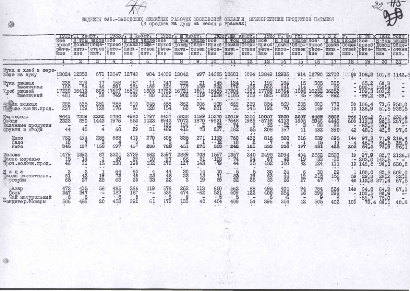- Бюджеты фабрично-заводских семейных рабочих Московской области. Приобретение продуктов питания в 1932-1933 гг.