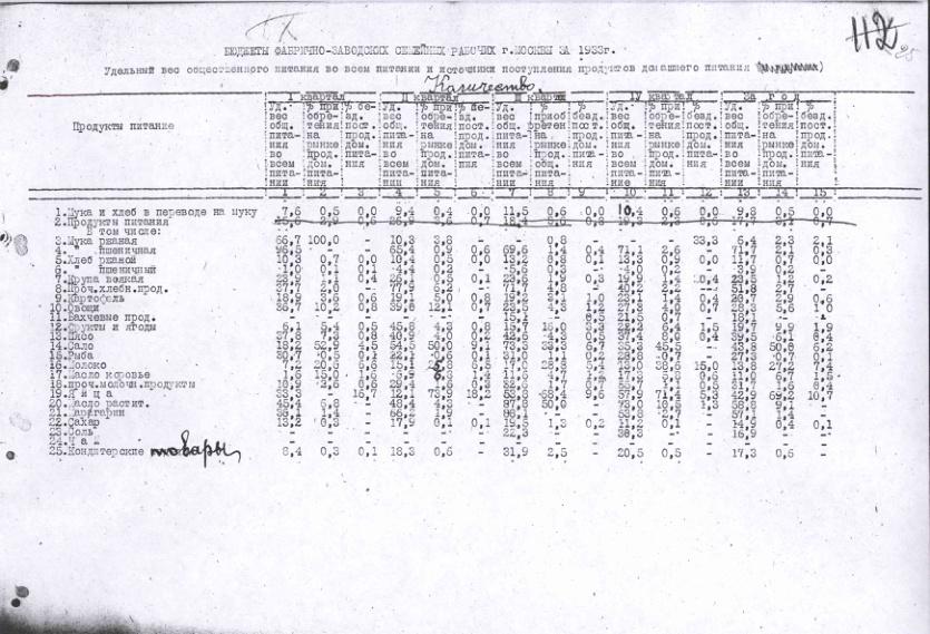 - Бюджеты фабрично-заводских семейных рабочих промышленности гор. Москвы в 1933 г. Удельный вес общественного питания и источники поступления продуктов домашнего питания.