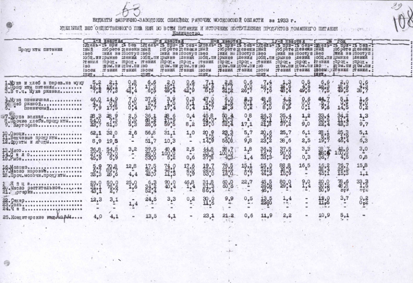- Бюджеты фабрично-заводских семейных рабочих промышленности Московской обл. в 1933 г. Удельный вес общественного питания и источники поступления продуктов домашнего питания