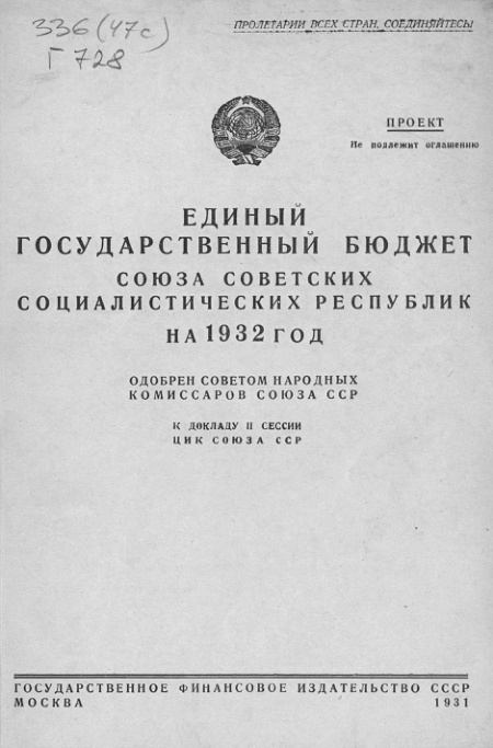 Единый государственный бюджет СССР на октябрь 1932 г.