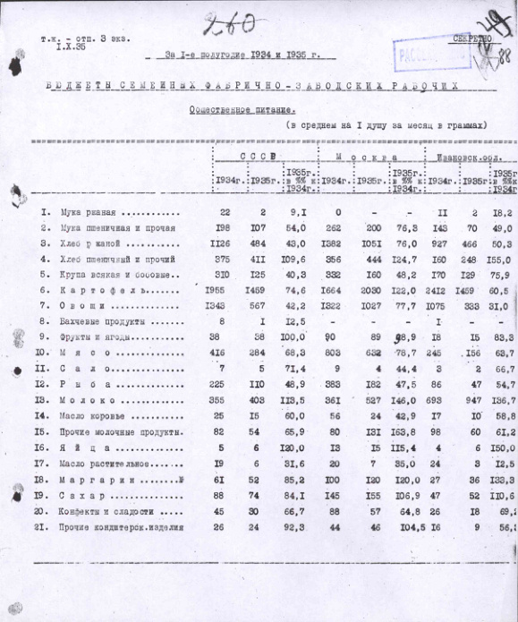 Бюджеты фабрично-заводских семейных рабочих. Общественное питание за 1-ое полугодие 1934-1935 гг.