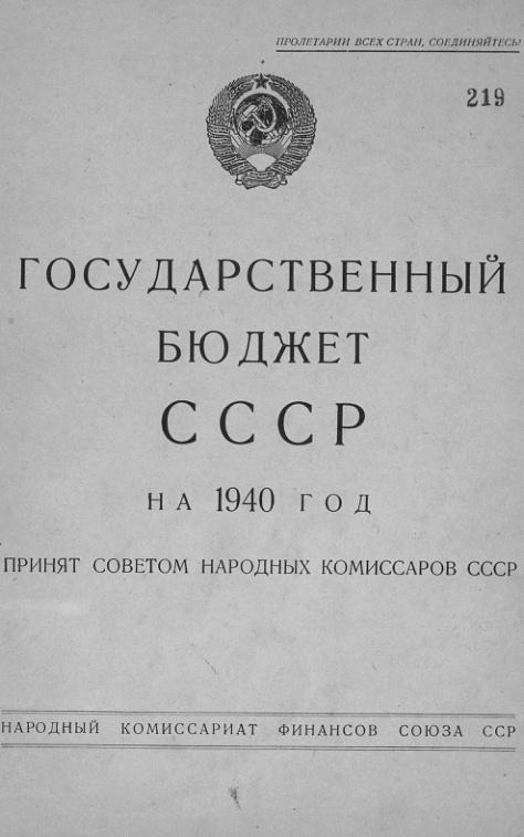 Государственный бюджет СССР на 1940 г.