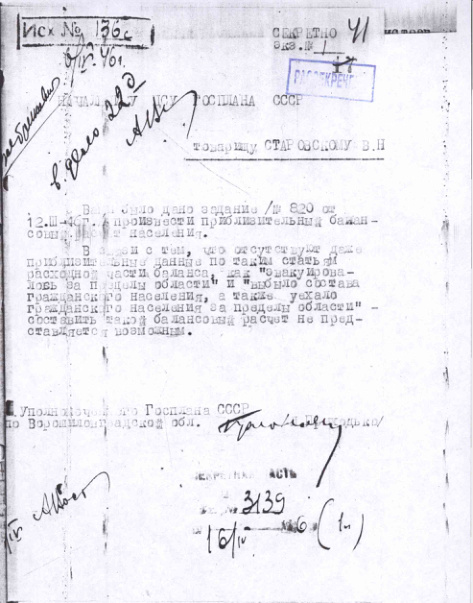 - Объяснительная по расчету движения населения за период 1941-1945 гг. по Ворошиловградской области. 16 апреля 1946 г.