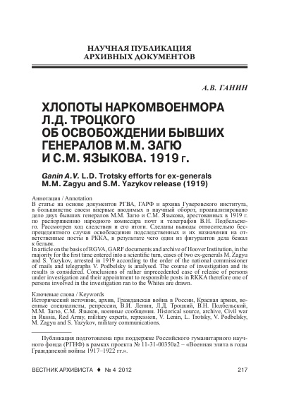 Вестник архивиста. 2012. № 4 (120). С. 217-230; 2013. № 1. С. 247-258.