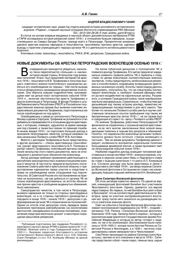 Новые документы об арестах петроградских военспецов осенью 1918 г.