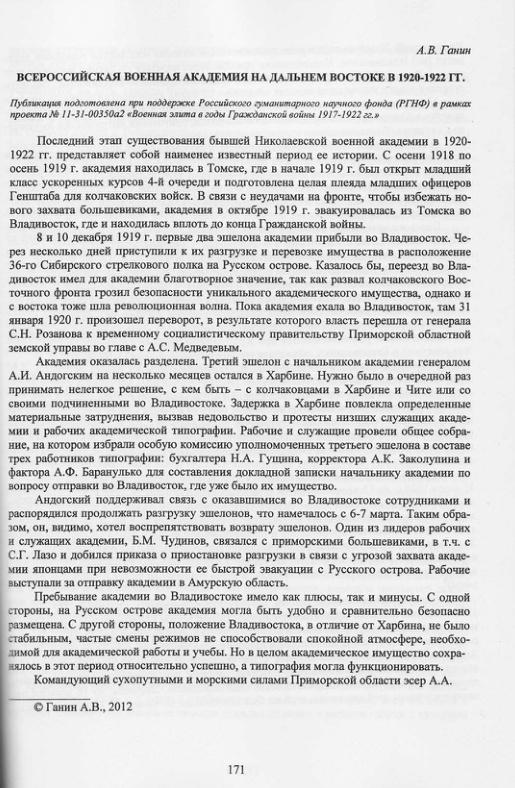Всероссийская военная академия на Дальнем Востоке в 1920-1922 гг.