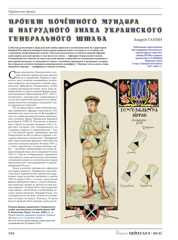 Проект почетного мундира и нагрудного знака украинского Генерального штаба