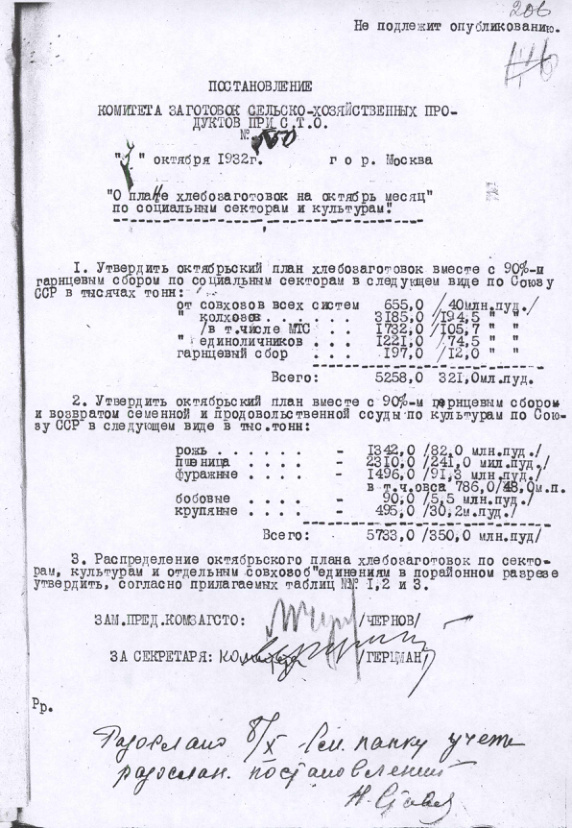 Постановление № 550 Комитета с.х. заготовок при СТО СССР. О плане хлебозаготовок на октябрь 1932 г. 3 октября 1932 г.