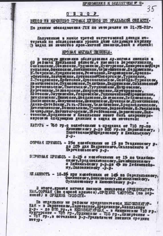 Обзор видов на качество яровых хлебов по Уральской области на 31 августа 1932 г.