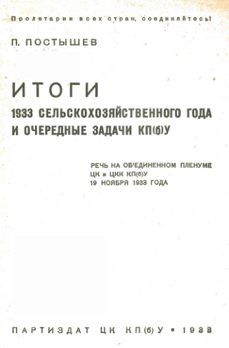 Итоги 1933 сельскохозяйственного года и очередные задачи КП(б)У. Речь на объединенном пленуме ЦК и ЦКК КП(б)У 19 ноября 1933 г.