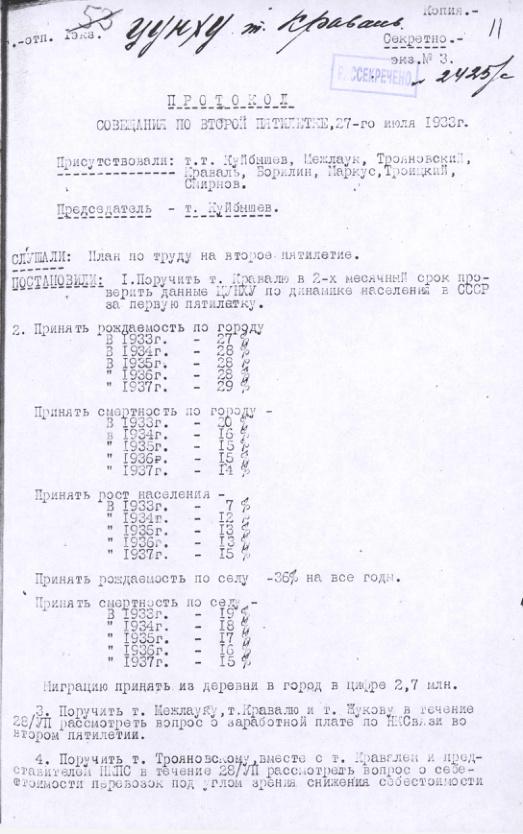 Протокол совещания по второй пятилетке от 27 июля 1933 г.