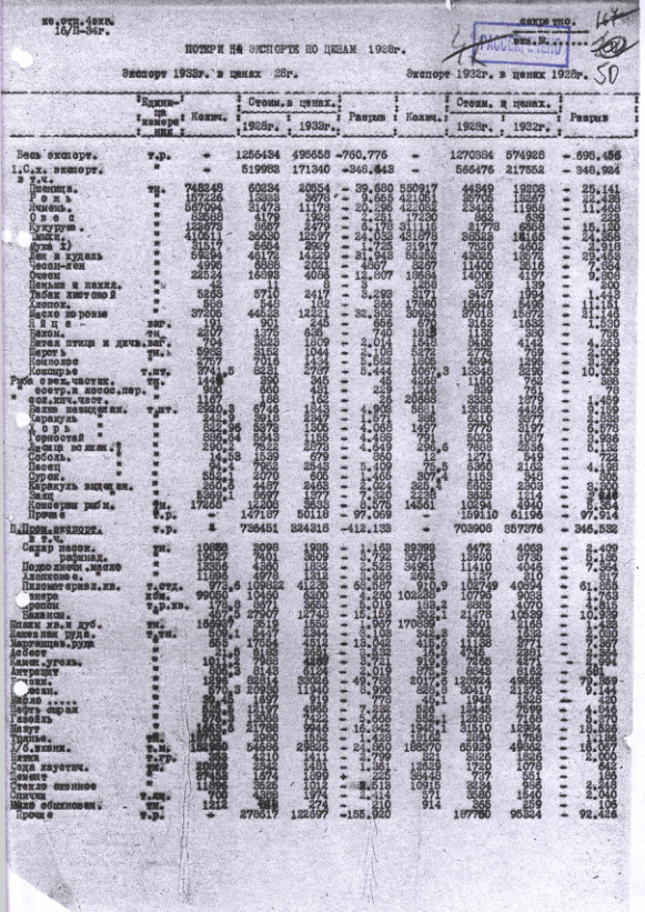 Справка о потерях экспорта 1933 года по ценам 1928 г. 16 февраля 1934 г.