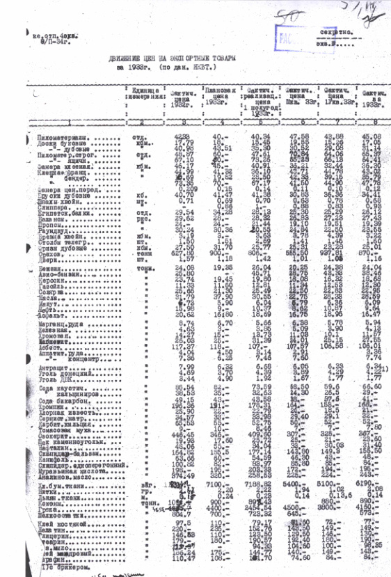 Справка о движении цен на экспортные товары за 1933 г. по данным НКВТ. 8 февраля 1933 г.