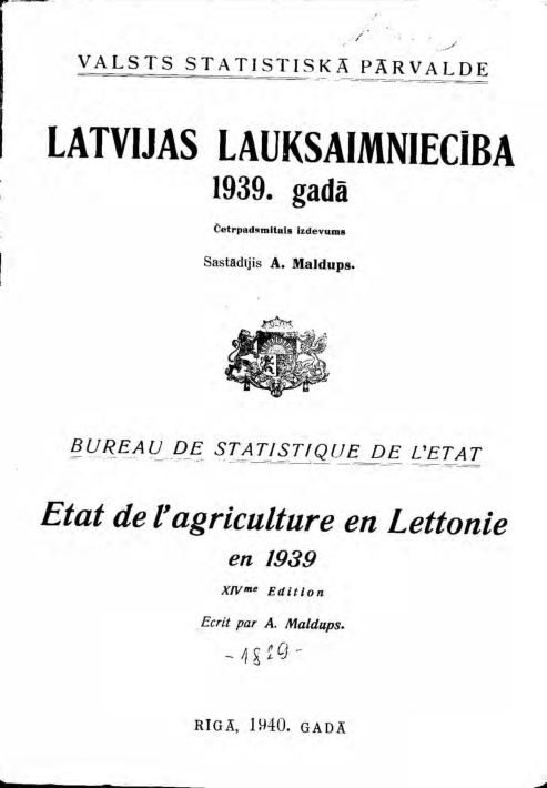 Agriculture of Latvia in 1939 (in Latvian and in French)