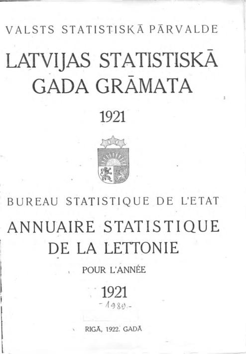 Statistical yearbook of Latvia 1921 (in Latvian and in French)