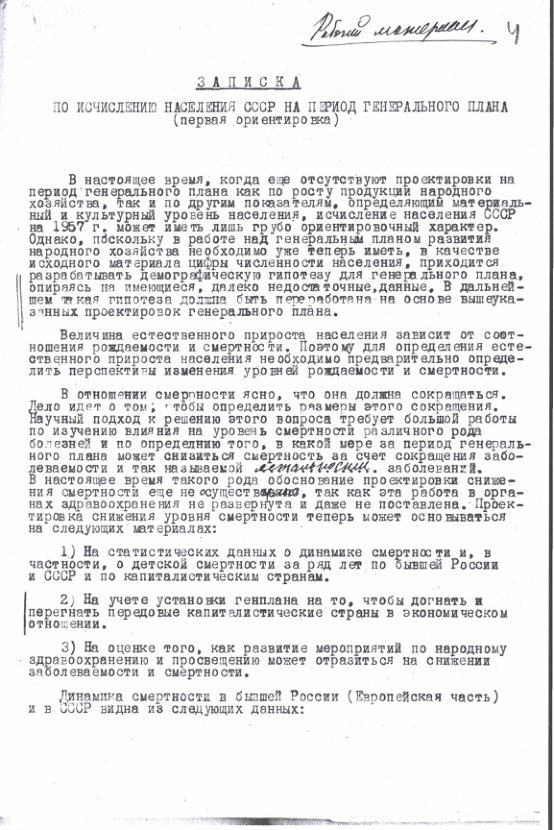 Записка по исчислению населения СССР в период генерального плана до 1957 г. 24 февраля 1941 г.